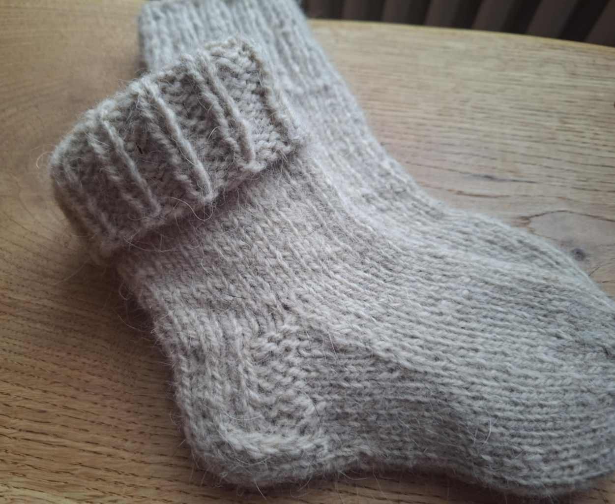 Väga soojad, paksud ja pehmed villased sokid. Materjal 30% koeravill, 70% lambavill. Laba pikkus 15,5 cm.