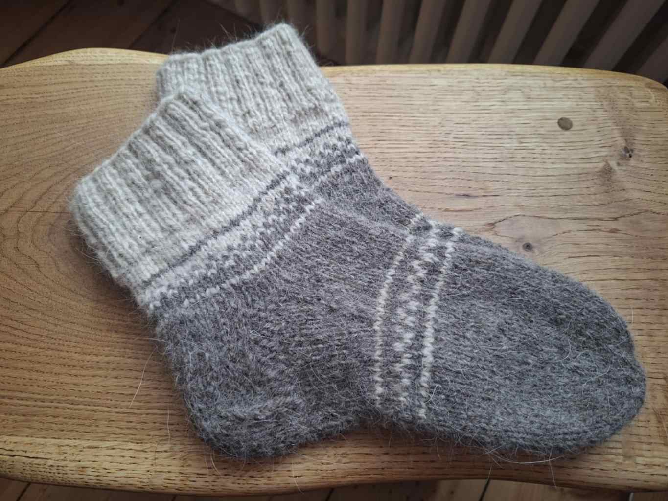 Väga soojad, paksud ja pehmed villased sokid. Materjal 30% koeravill, 70% lambavill. Laba pikkus 24,5 cm.